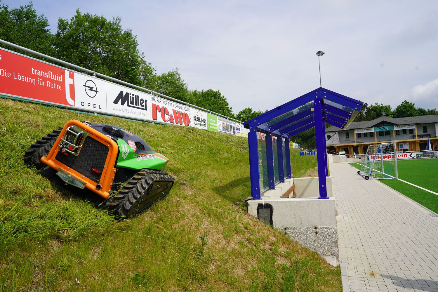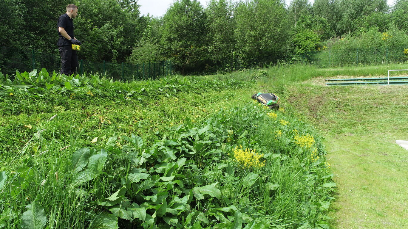 = Mähen in Steillagen bis 70° Neigung dank LOW-CENTER- Konzept