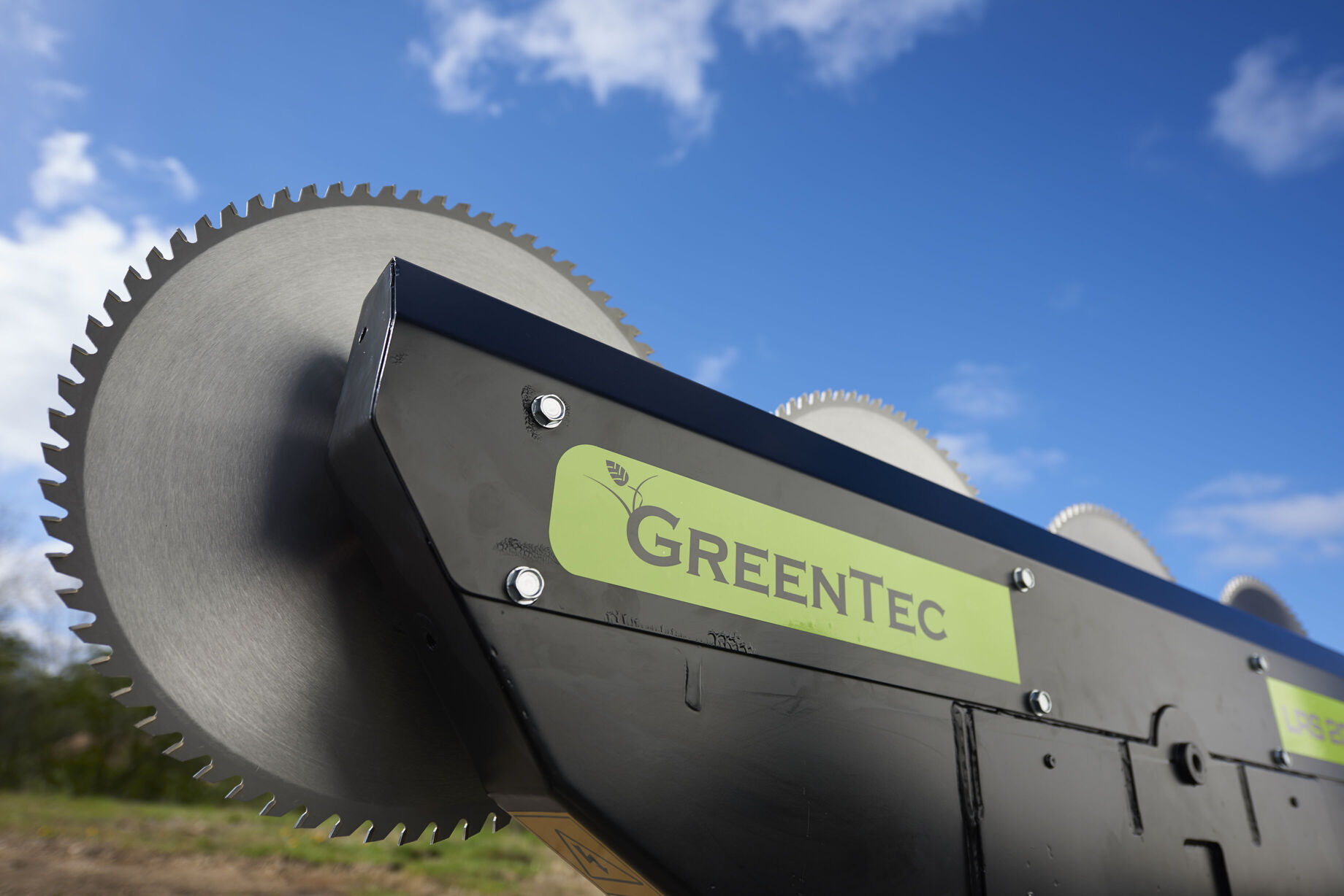 = effektives Astführungssystem mit Astabweiser zwischen Sägeblättern