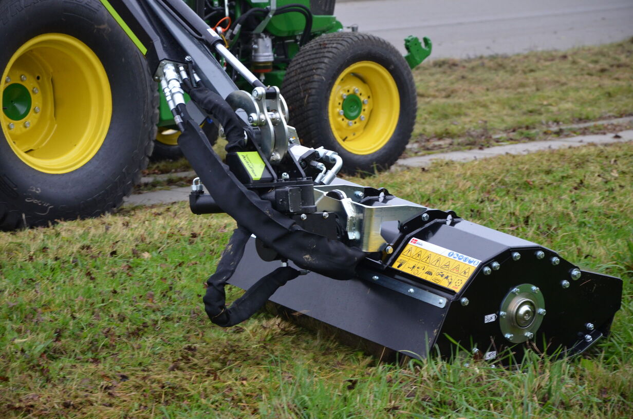 = Auslegearm kann seitlich des Schleppers nach vorne bewegt werden