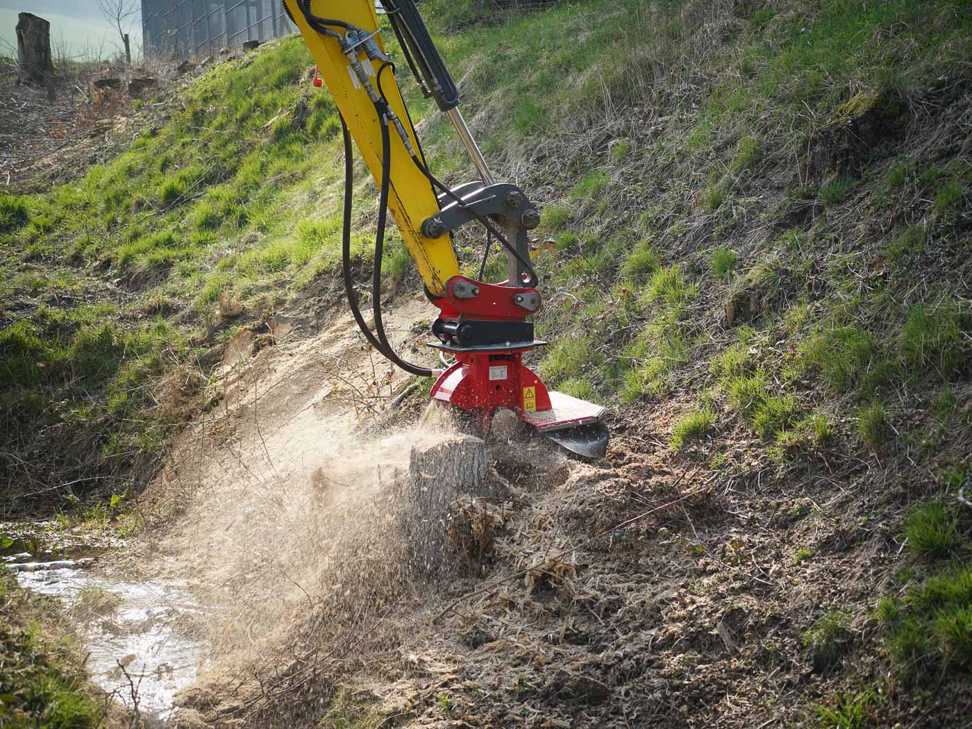 = einfache und schnelle Zerkleinerung von hochstehenden Baumstümpfen