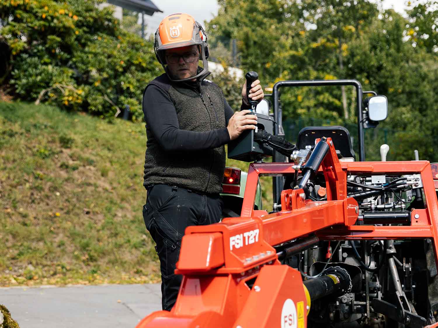 Profi-Stubbenfräse mit Zapfwellenantrieb und Joystick-Bedienung