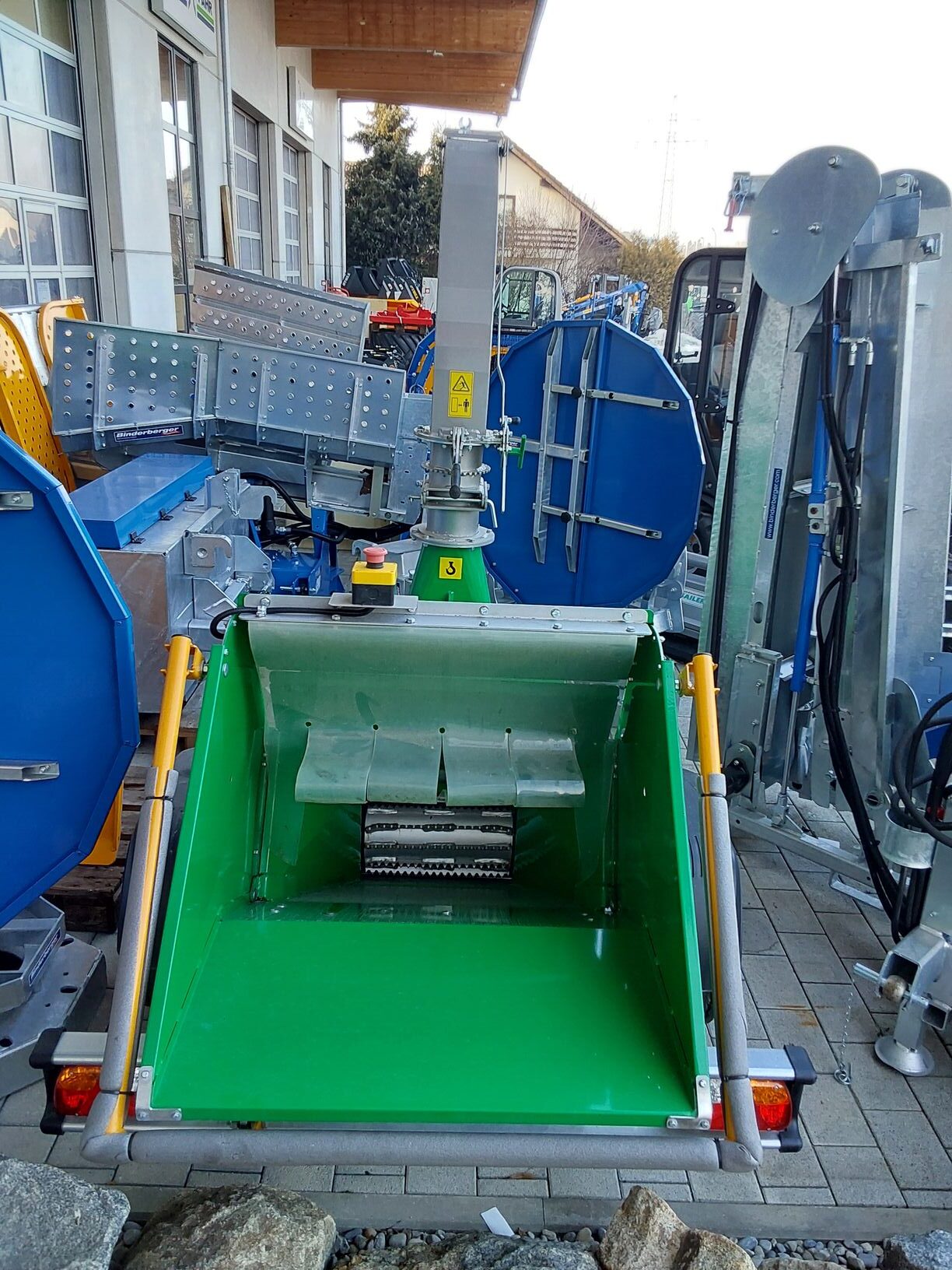 = mobiler Holzhäcksler auf PKW-Fahrgestell mit hydraulischem Einzug und