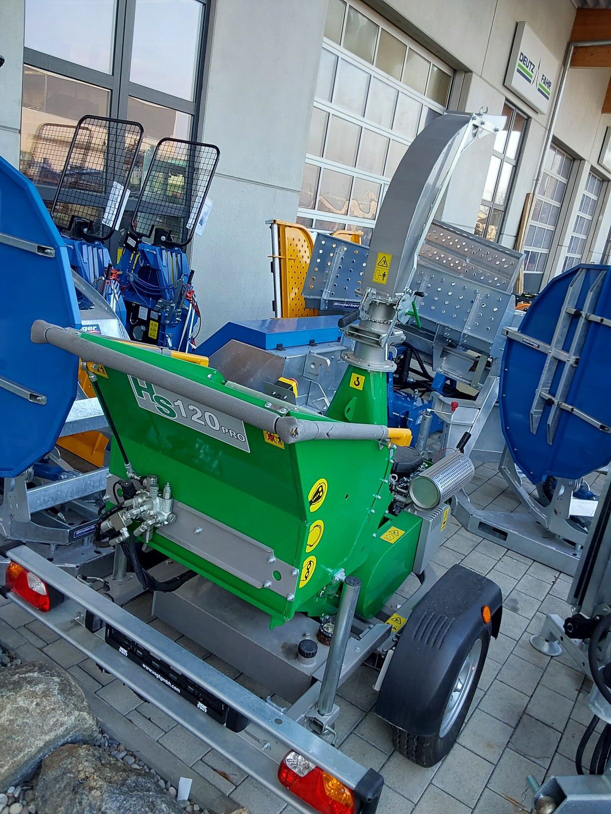 HS 120 MF PRO Holzhacker /Holzhäcksler mit Benzinmotor und PKW-Fahrwerk-Lagergerät