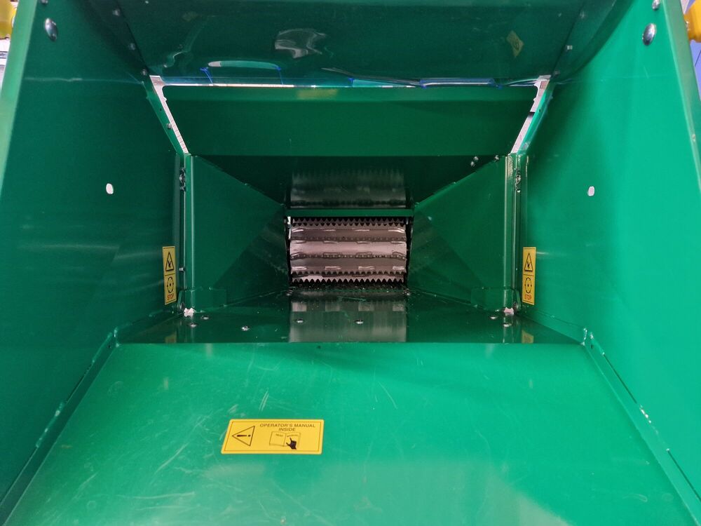 = hydraulisch angetriebene, breite Einzugswalze mit Spezialverzahnung