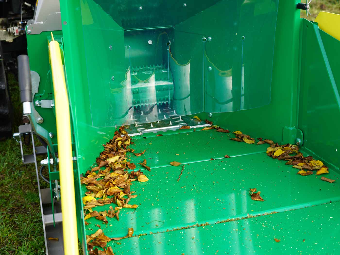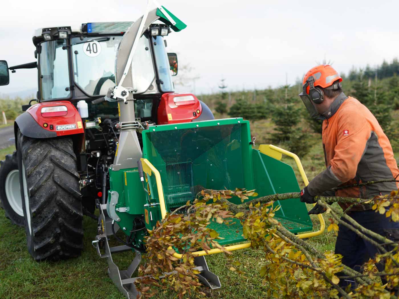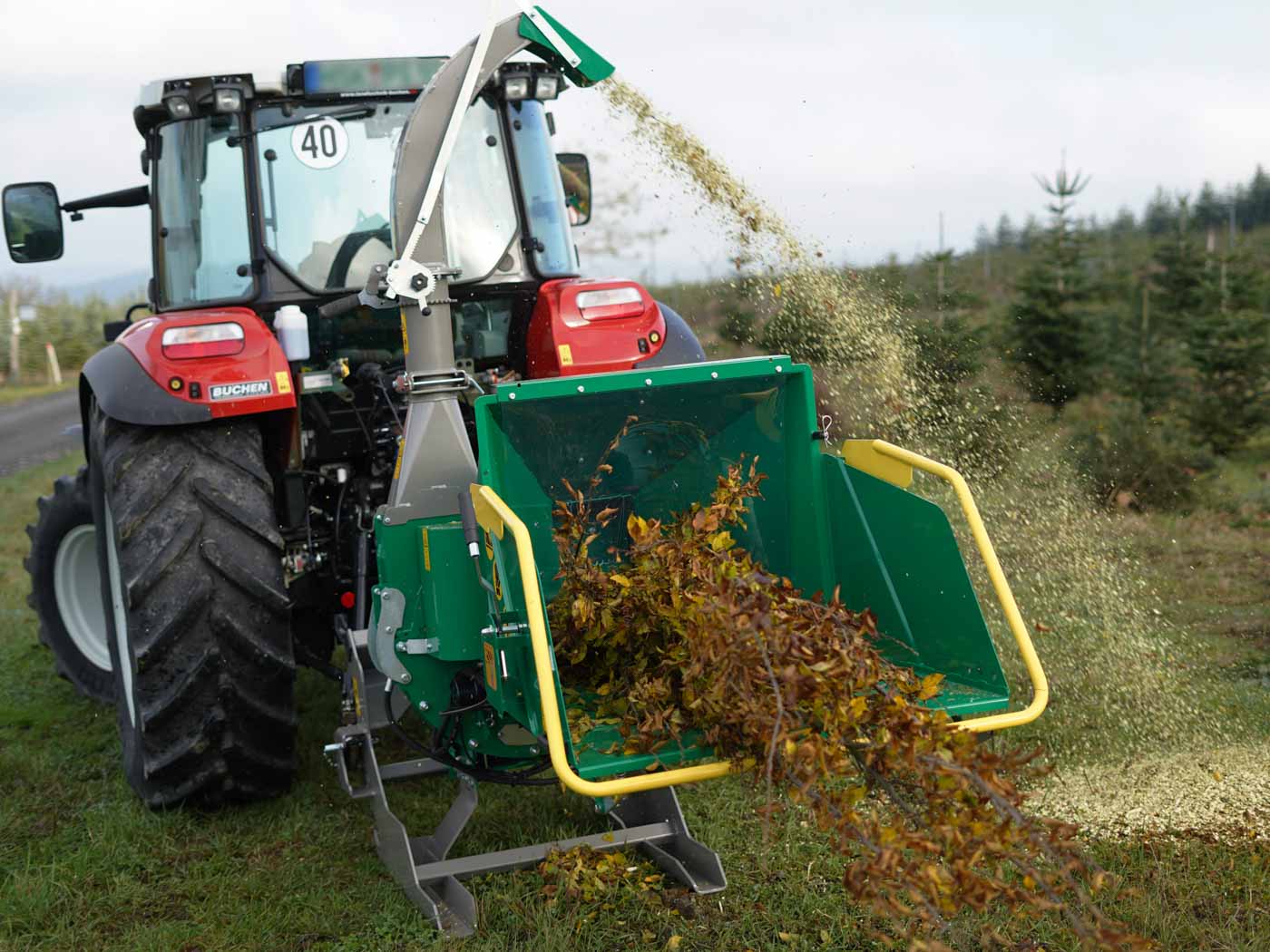 = äußerst starker Einzug sowohl bei feinem als auch bei widerspenstigem Material (massives Stammholz, starke Verzweigungen, Grünschnitt)
