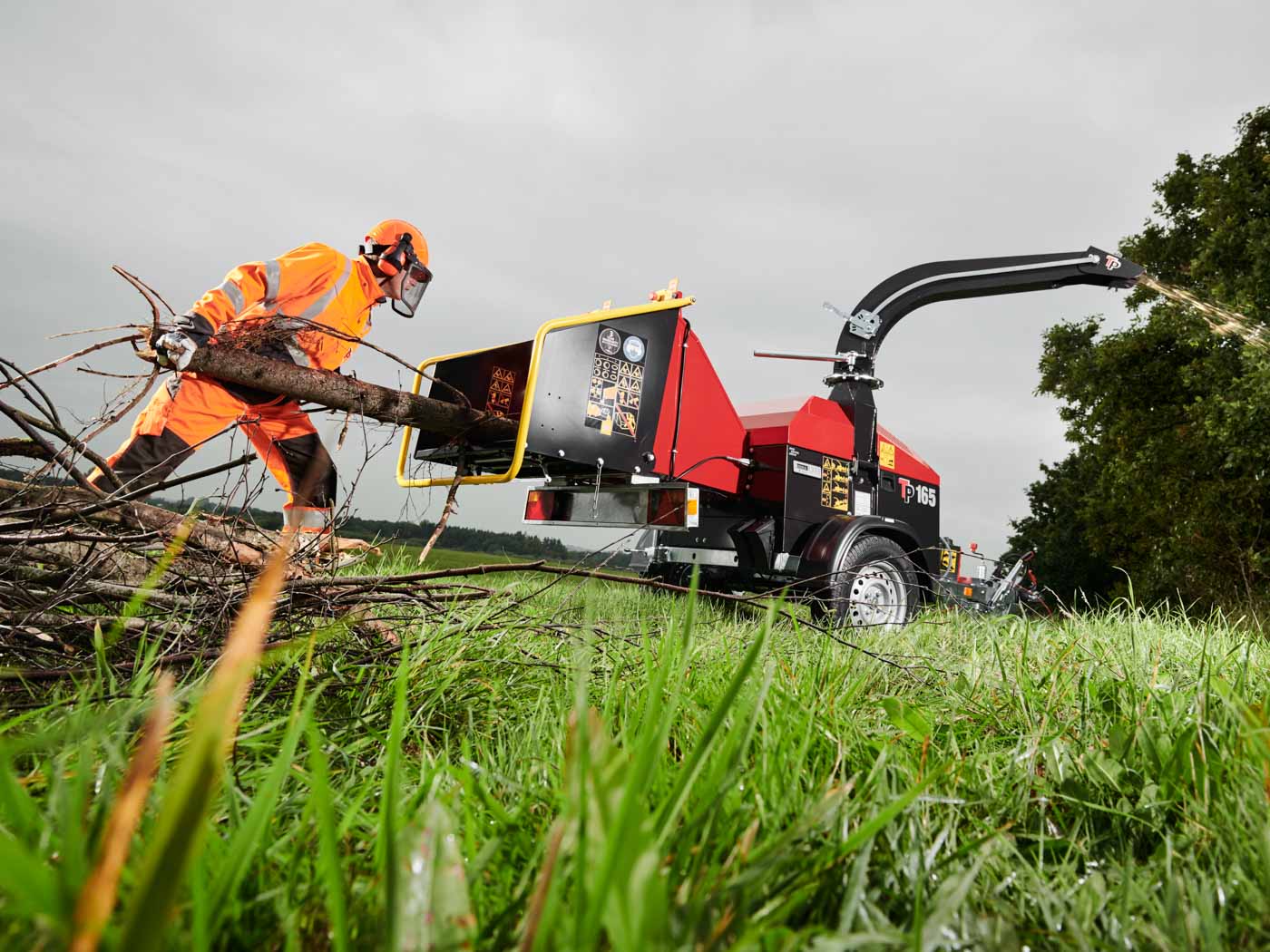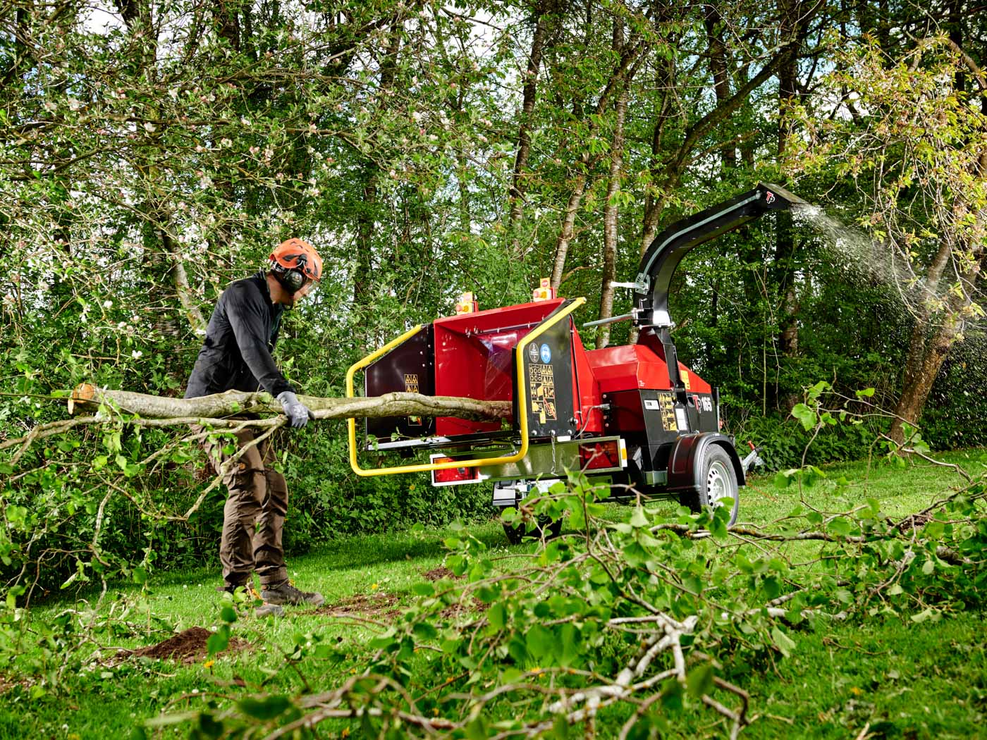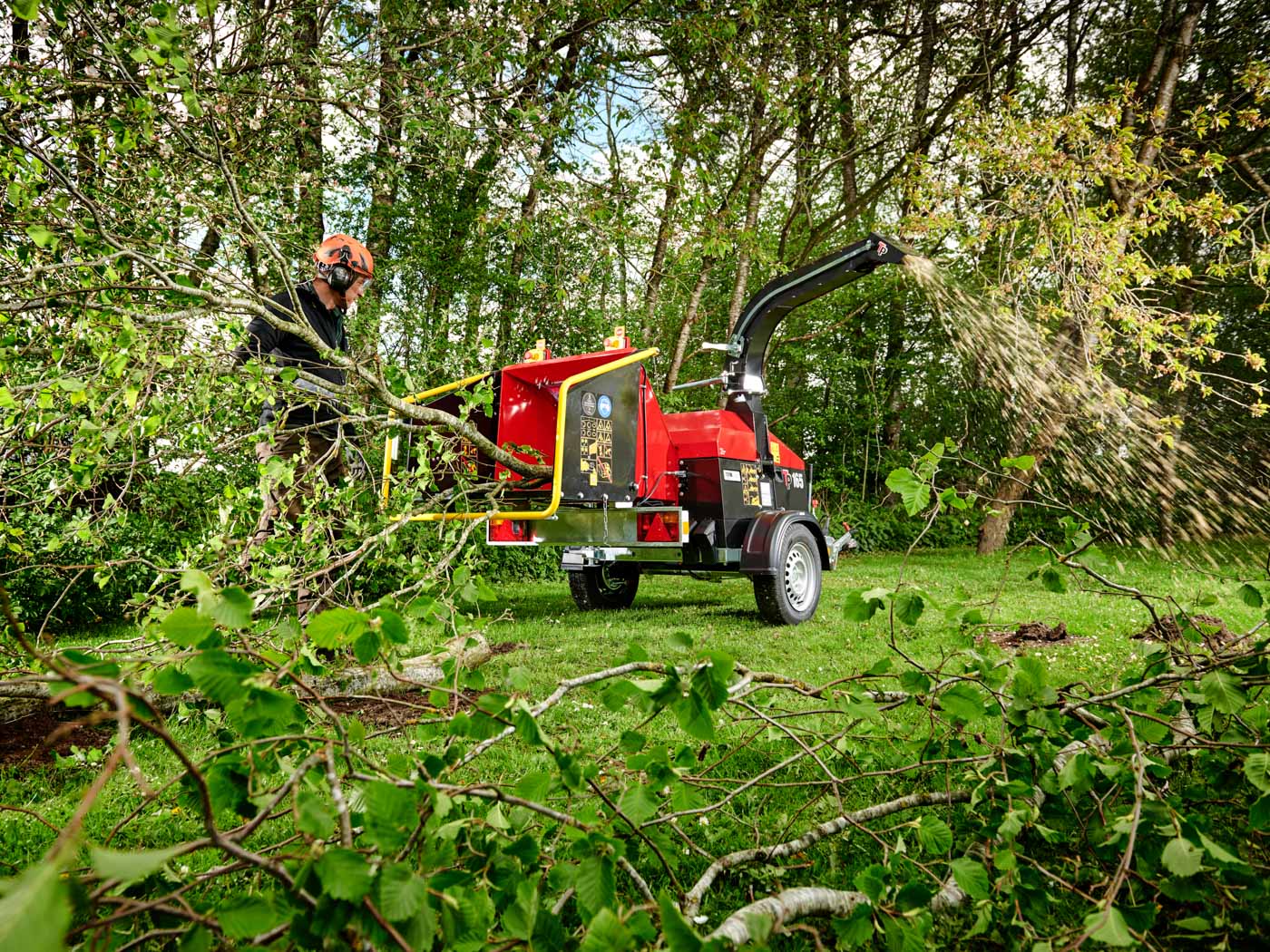 = äußerst starker Einzug auch bei widerspenstigem Material (massives Stammholz, starke Verzweigungen, Grünschnitt)