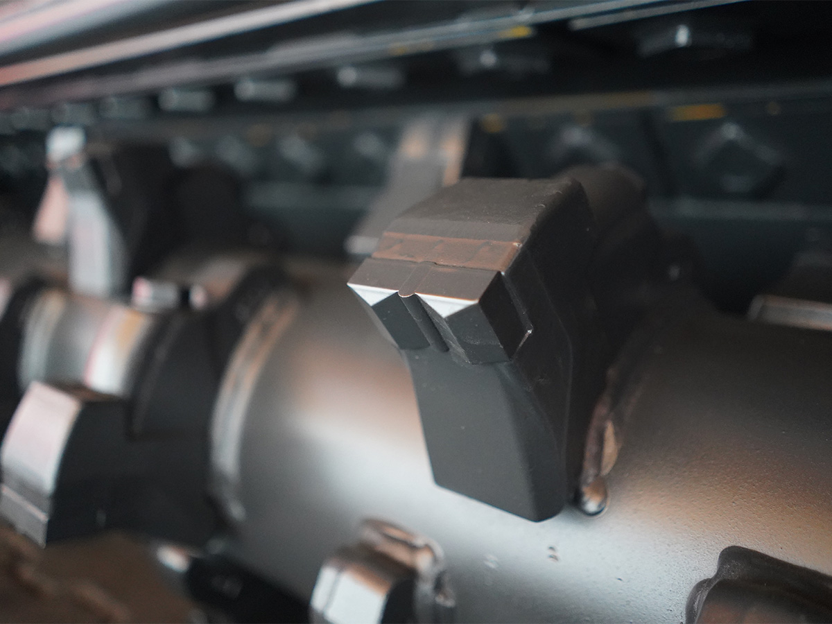 = insgesamt 3 Reihen schraubbare Gegenschneiden aus Hardox 450