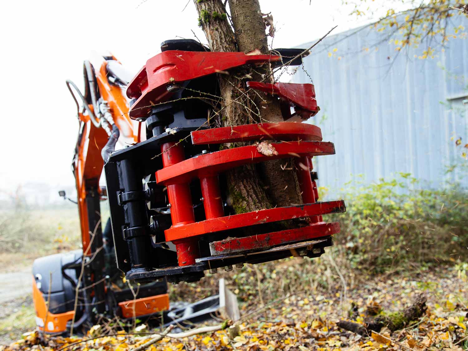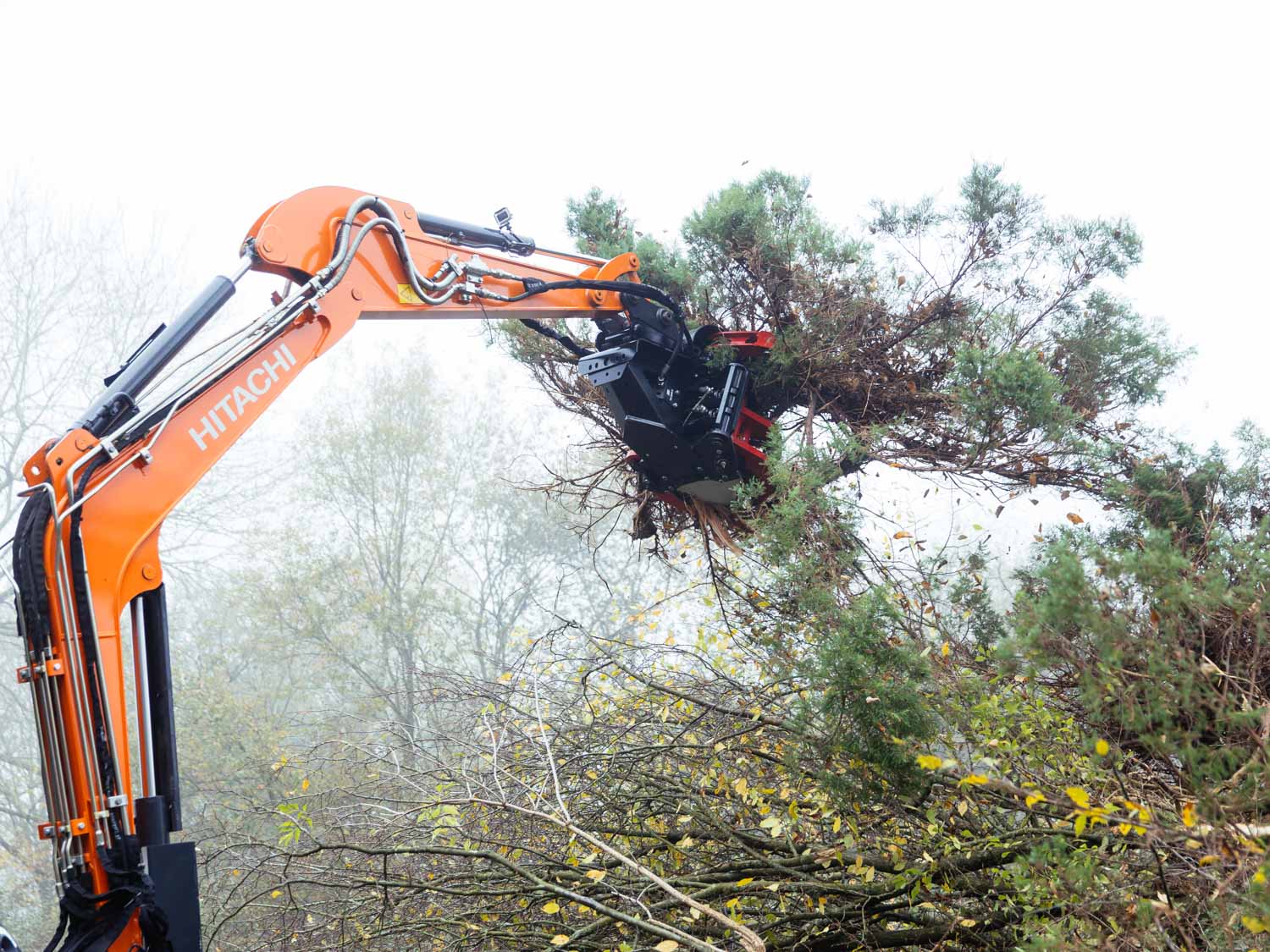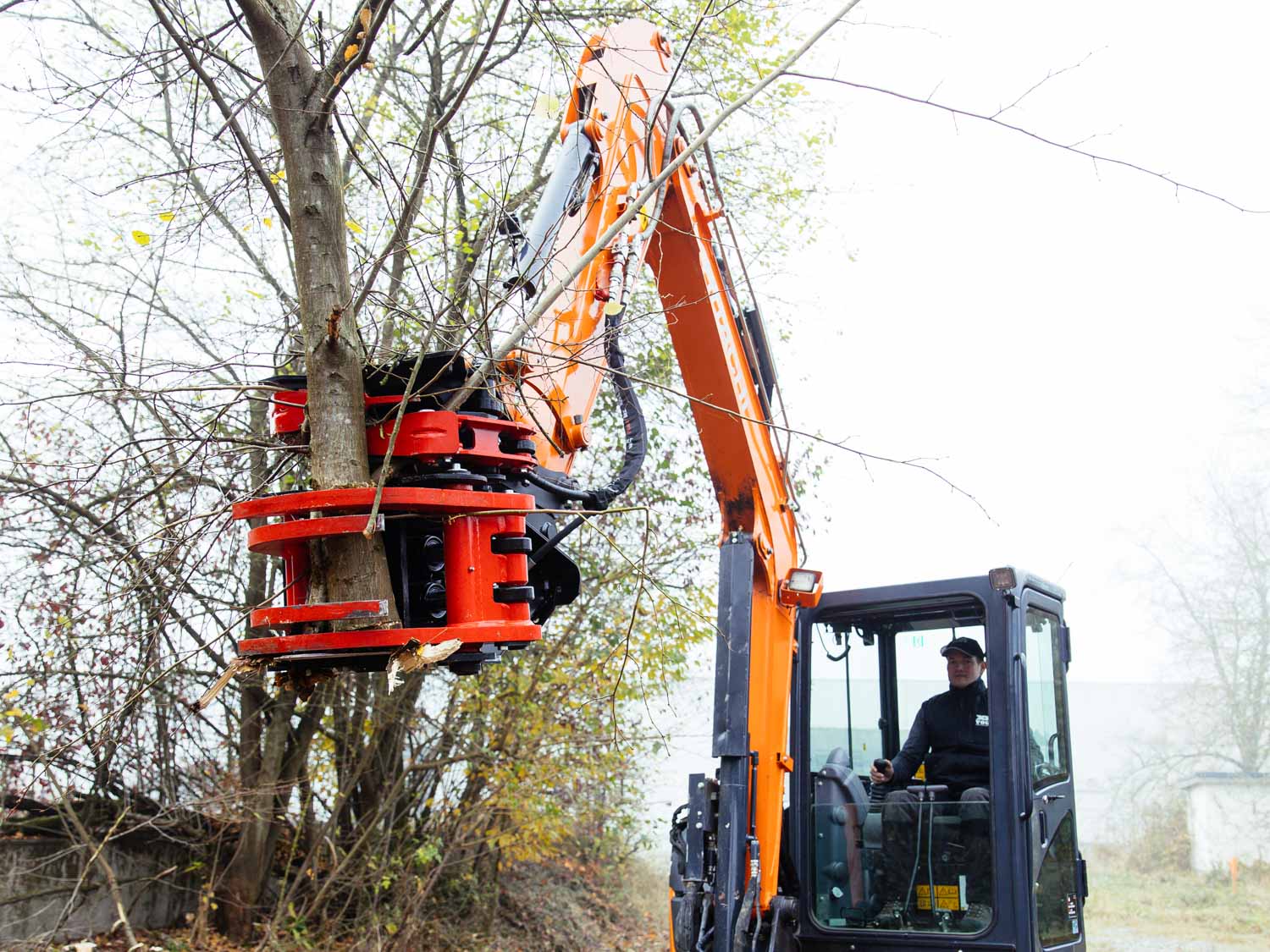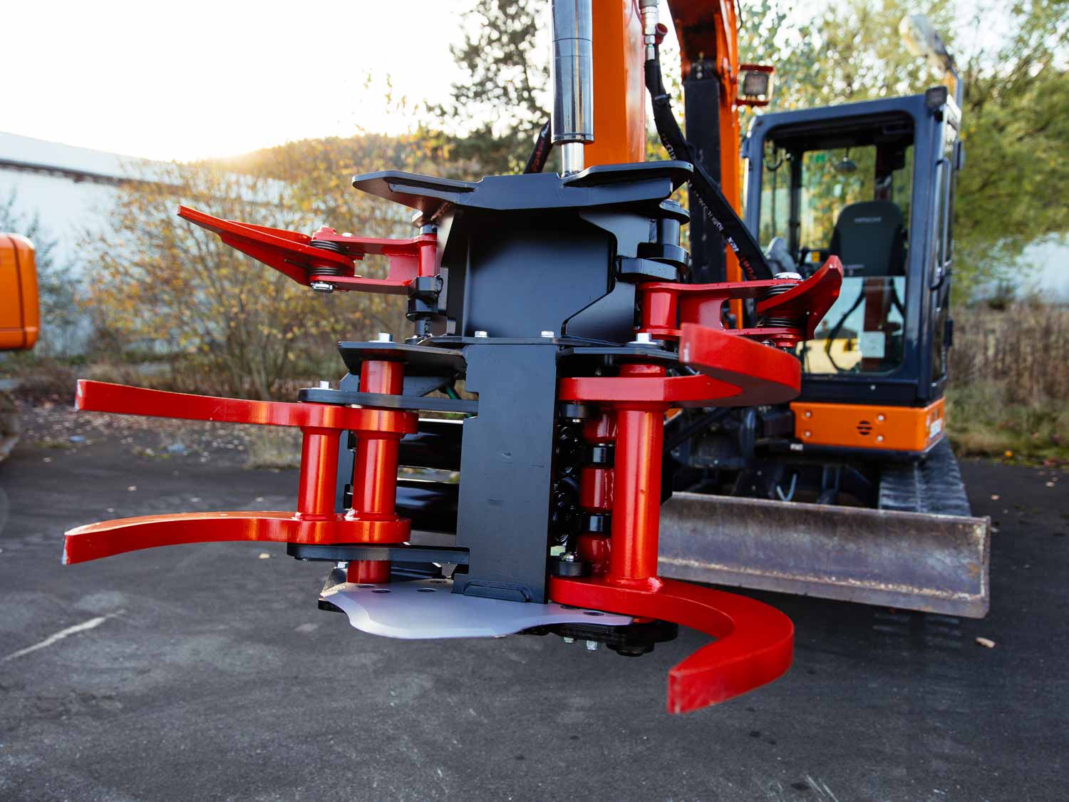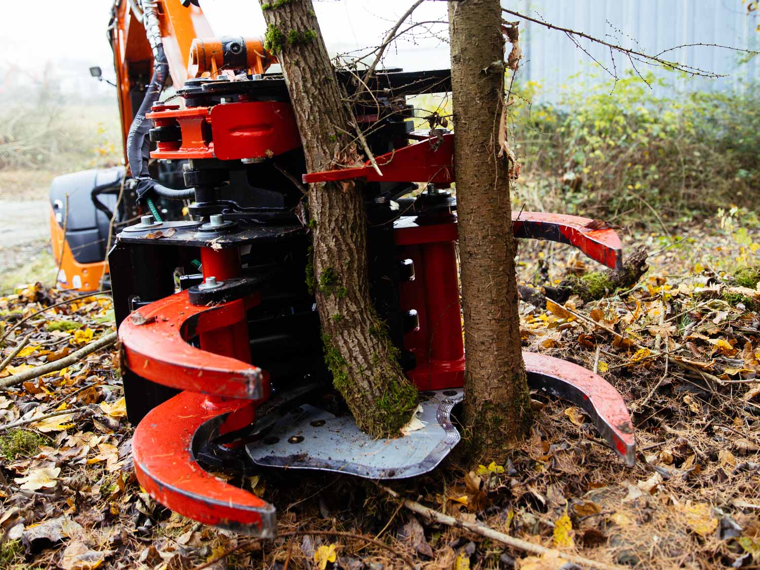Robuster Fällgreifer für Bagger von 1,8 bis 20 to und Materialstärken bis 300 mm. TREE HUGGER Serie E - Made in Finland.