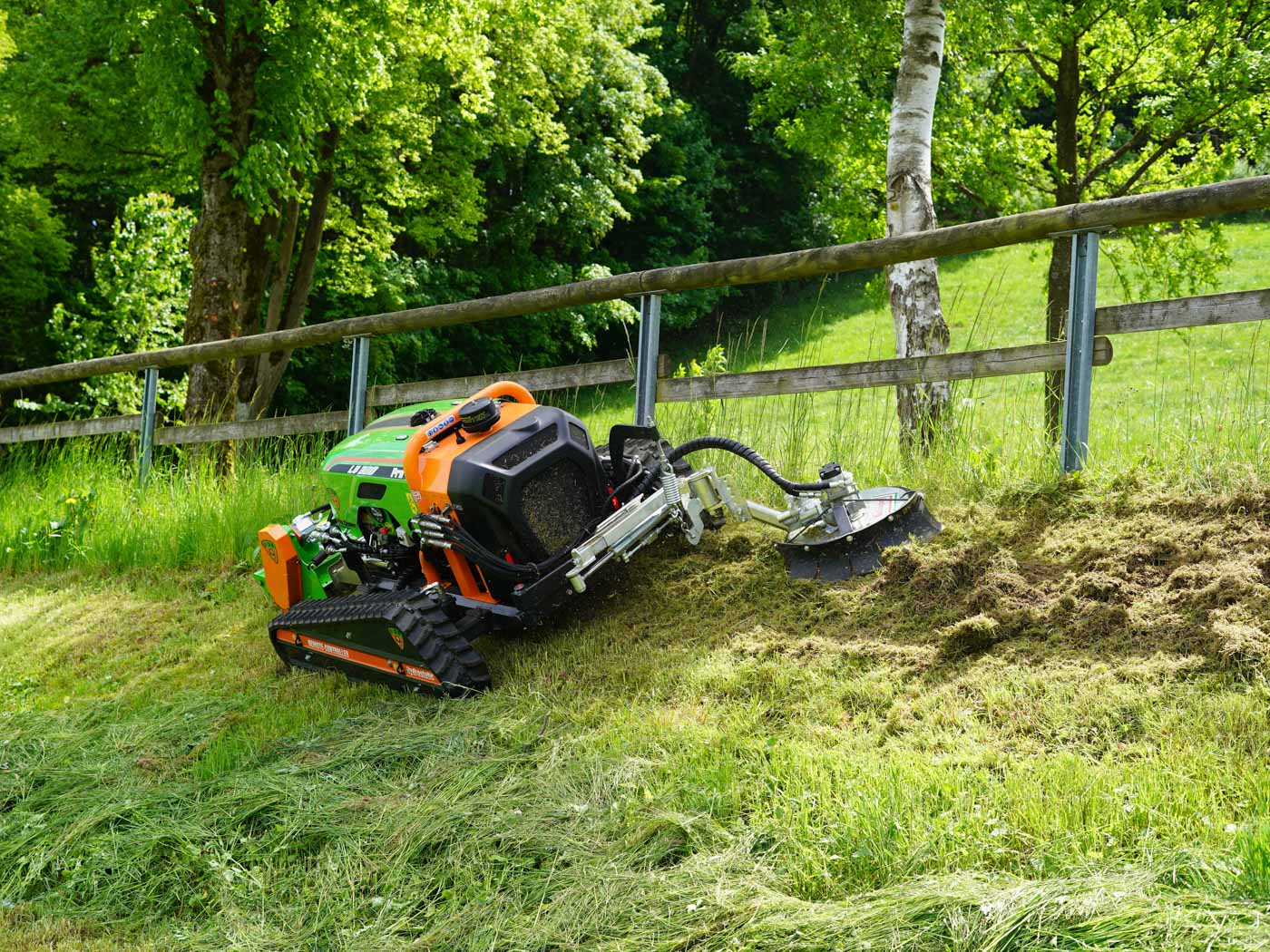 MDB Randstreifenmäher für MDB Funkraupe zum Mähen an Zäunen, Bäumen, Solaranlagen, etc. Geeignet für die Modelle LV300 PRO, LV400 PRO X, LV500 PRO, LV 600 PRO & LV 800 PRO.