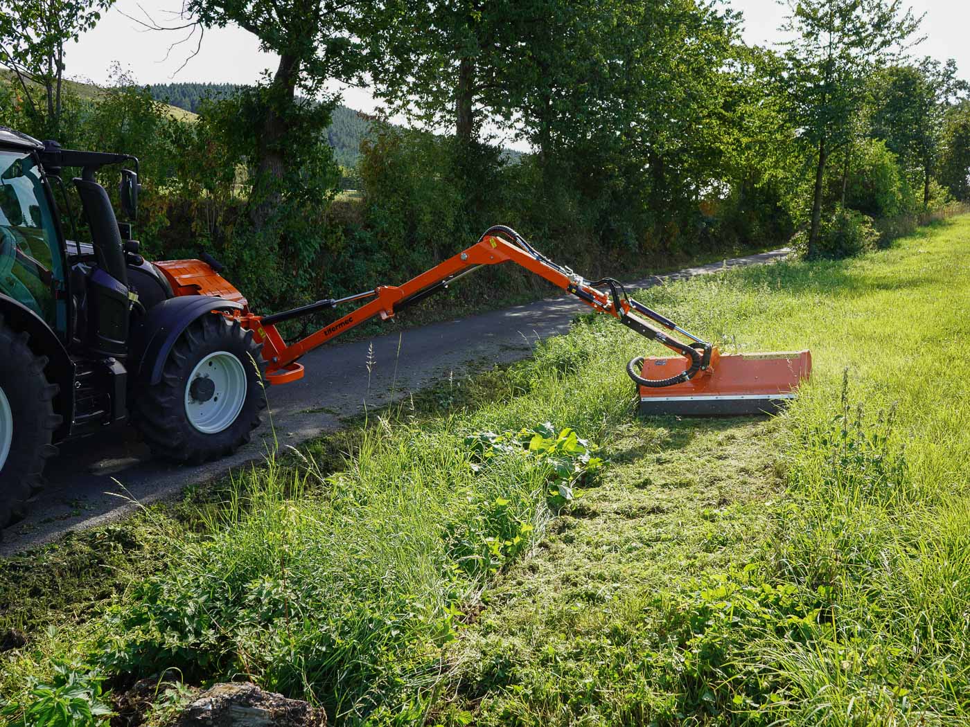 Professioneller Frontausleger mit HIGH POWER Hydraulik und erweiterter diagonaler Schwenkung.