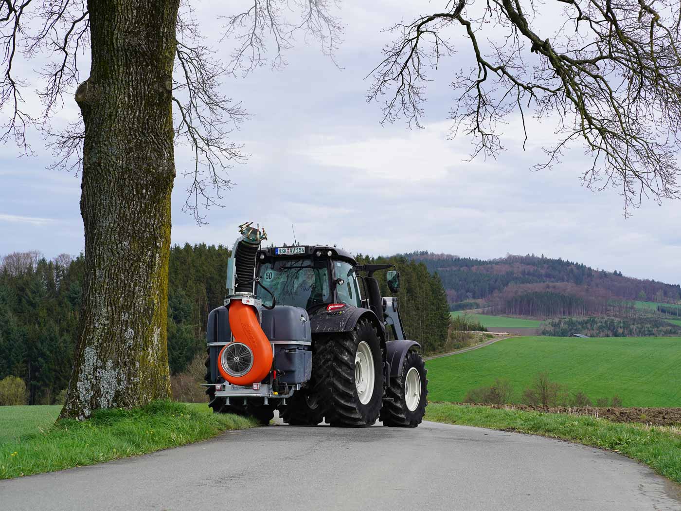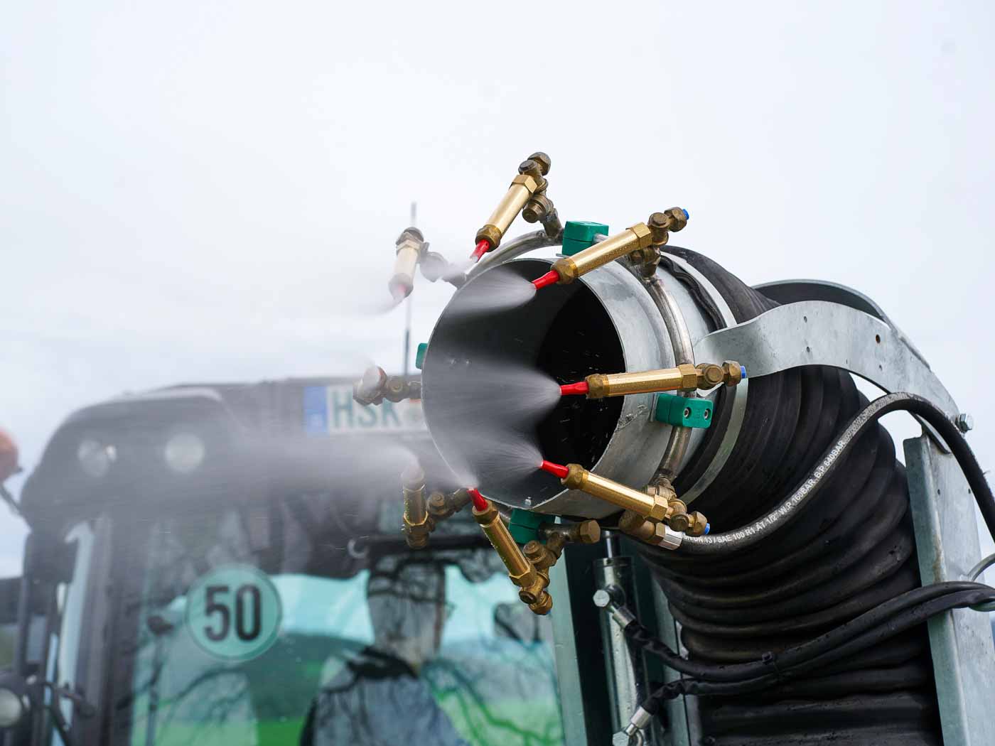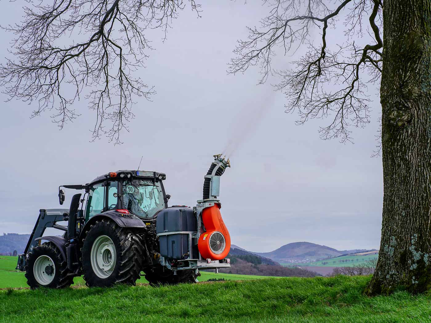Professionelle Turbinenspritze zur effektiven Bekämpfung des Eichenprozessionsspinners.